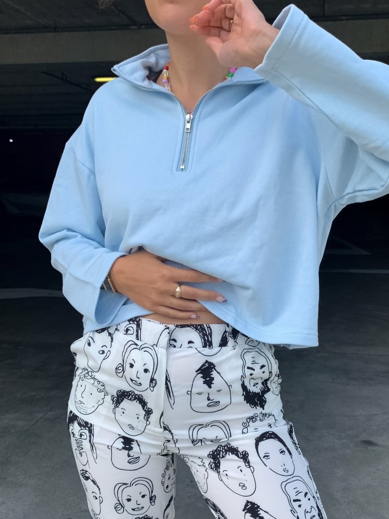 Bundle up for the cooler weather with this super cute sweater, paired with some vintage denim jeans and boots for the perfect outfit.